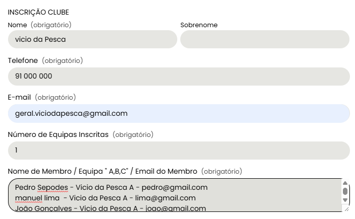 INCRIÇÃO CLUBES